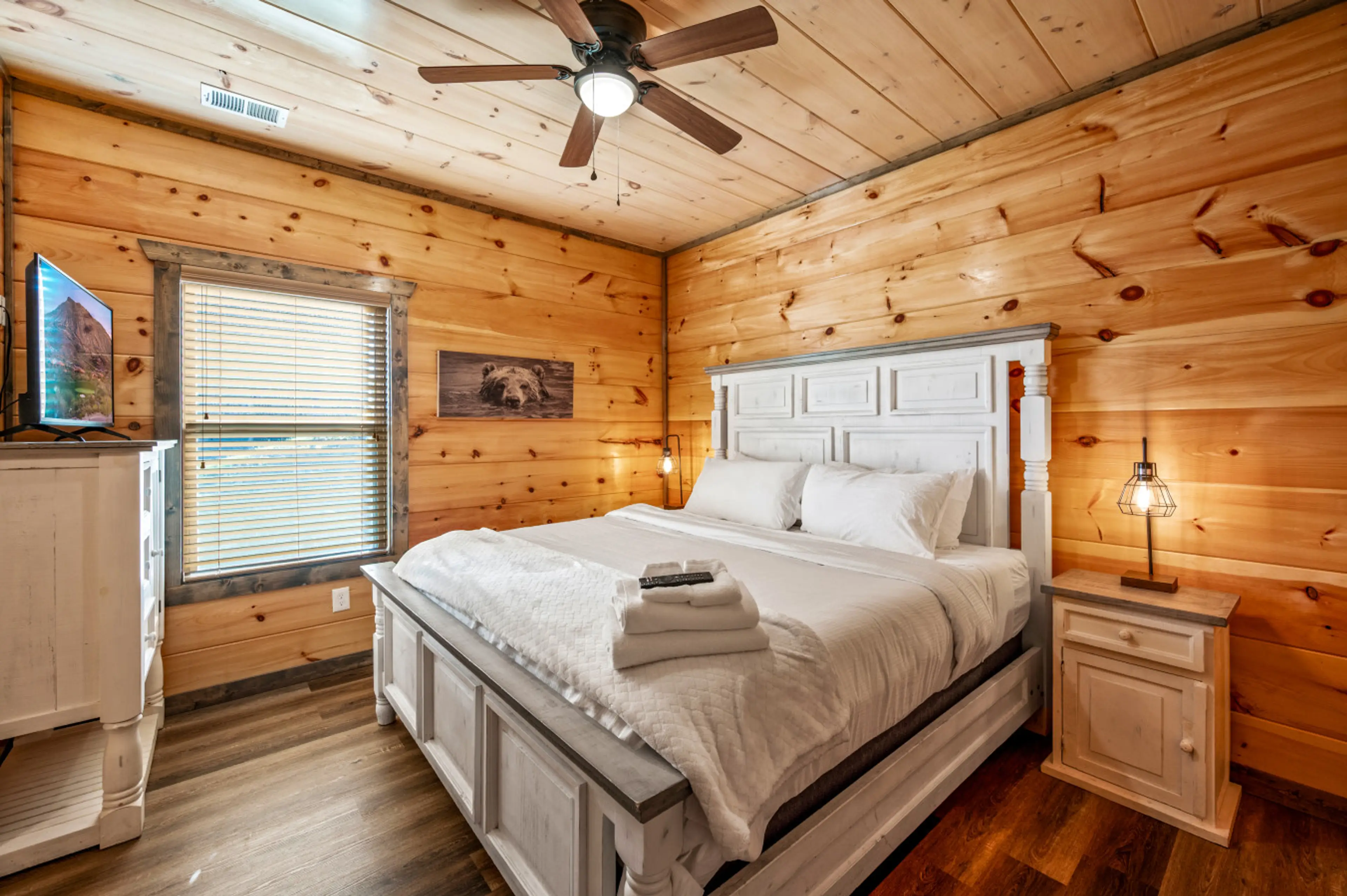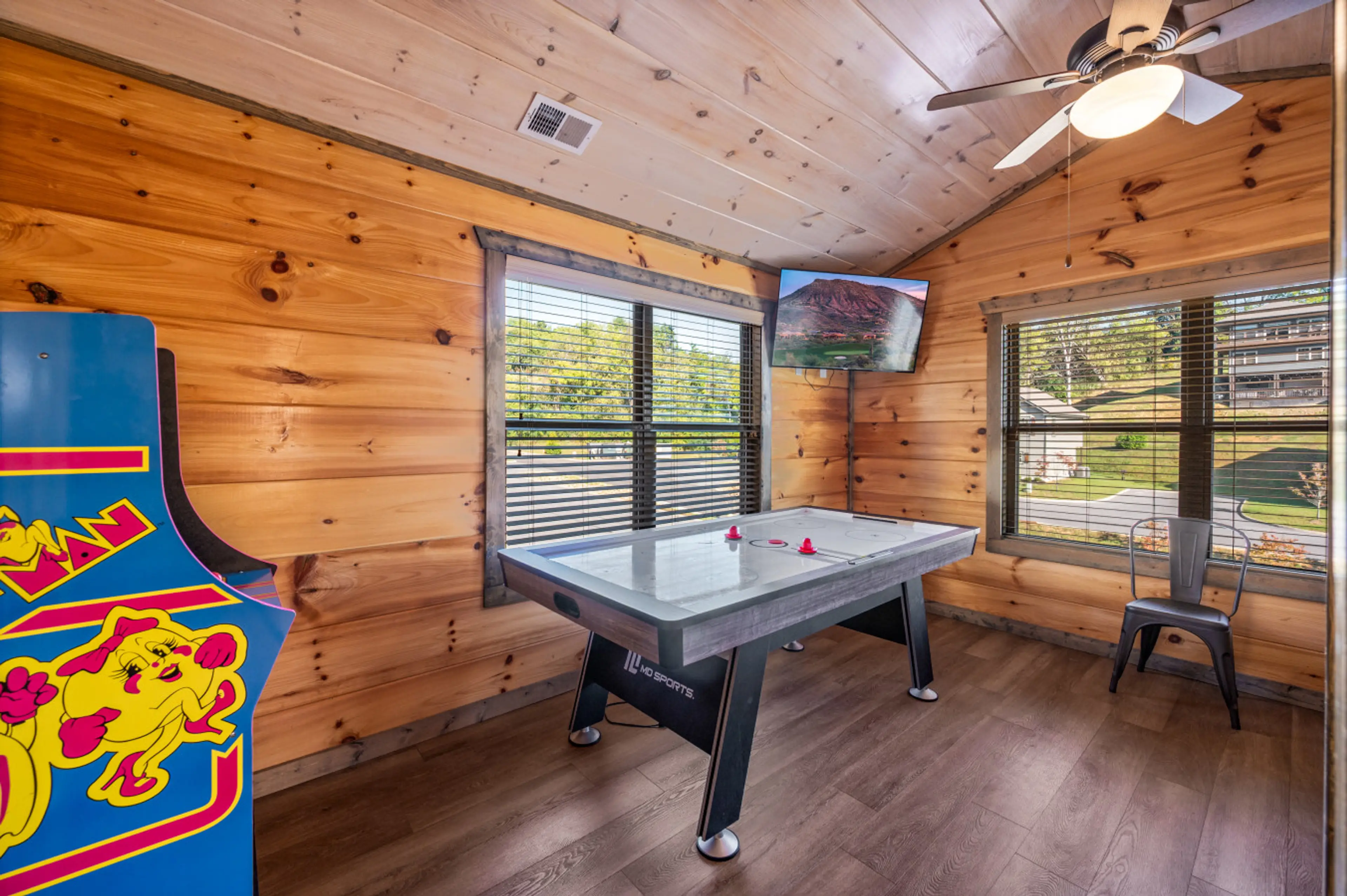 Welcome to Grey Wood Lodge! This charming retreat offers a cozy yet stylish ambiance with a Vizio TV, electric fireplace, and loveseat in the living room. With five spacious bedrooms, each featuring a Smart TV, everyone can unwind in comfort. Enjoy the private hot tub under the stars or gather aroun...
