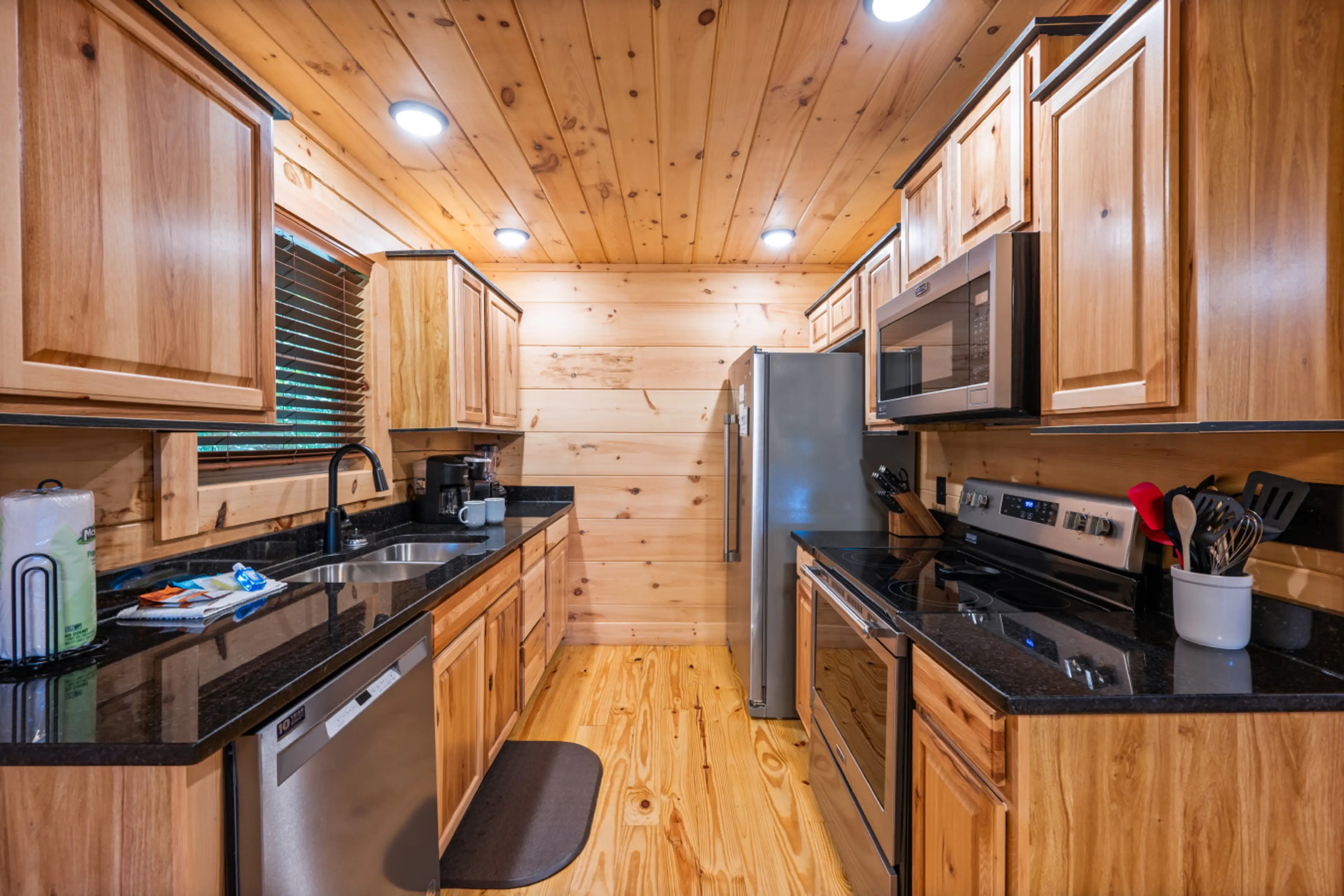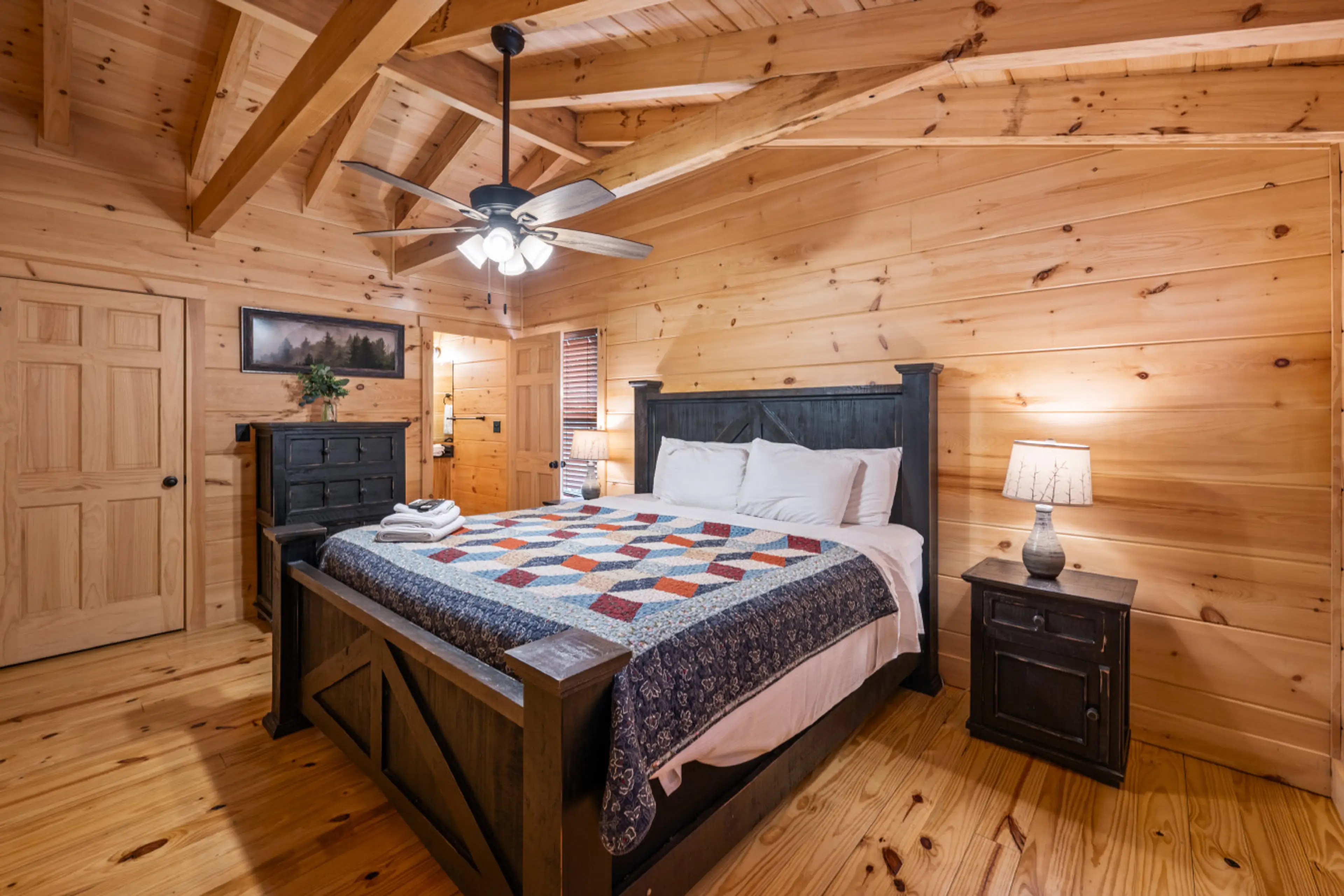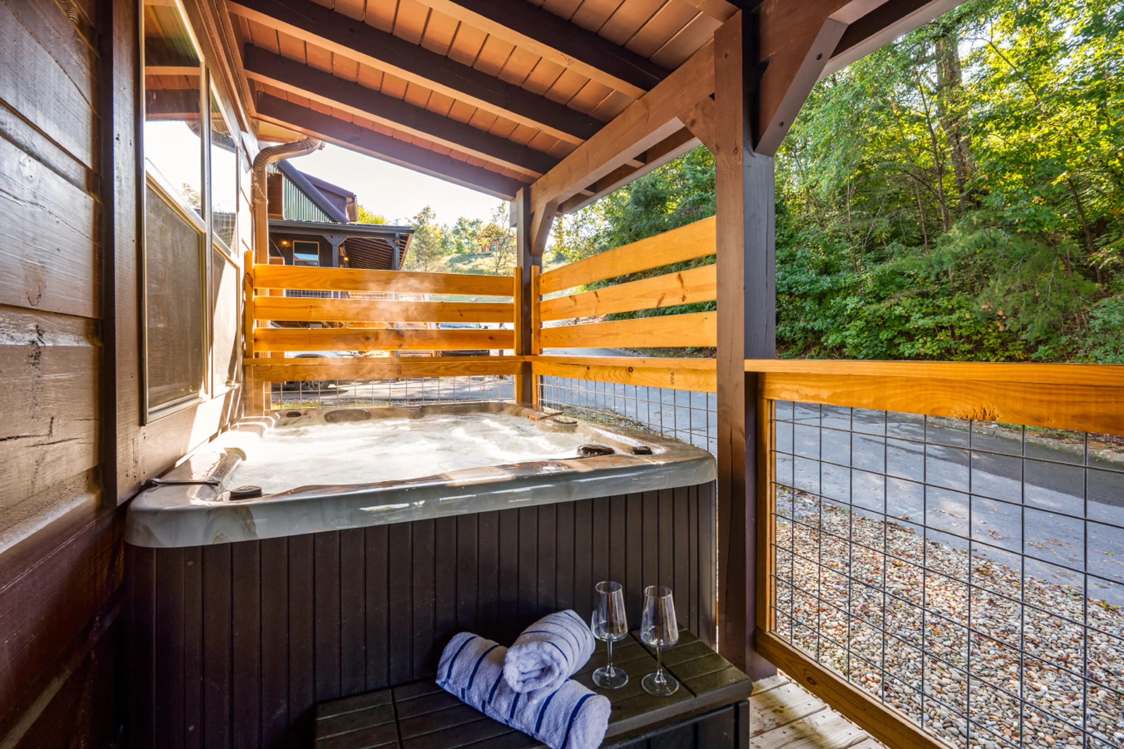 Welcome to Beary Cottage! Enjoy a cozy simple ambiance in the living room with electric fireplace, and loveseat in the seating area. This rustic cabin retreat features 2 bedrooms with private bathrooms, each with a Smart TV, perfect for relaxation. Unwind and soak in the private hot tub or fire up t...