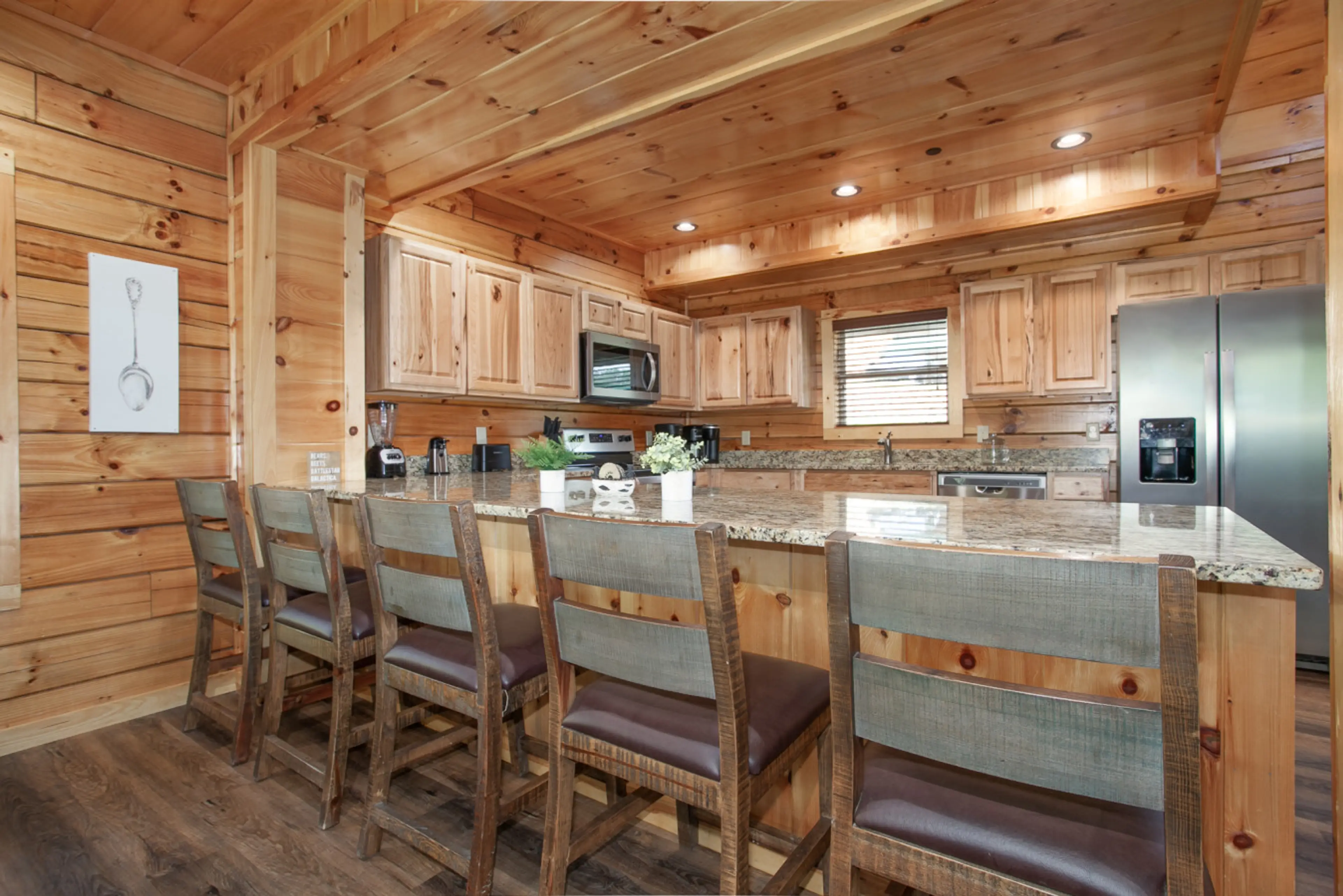 Escape to this spacious 5BR/5BA luxury cabin perfect for families or groups! Enjoy a private home theater with 8-seat cinema seating, a large hot tub on the covered deck, and king suites with smart TVs and private baths. The open-concept kitchen, dining, and living area is ideal for gathering, while...