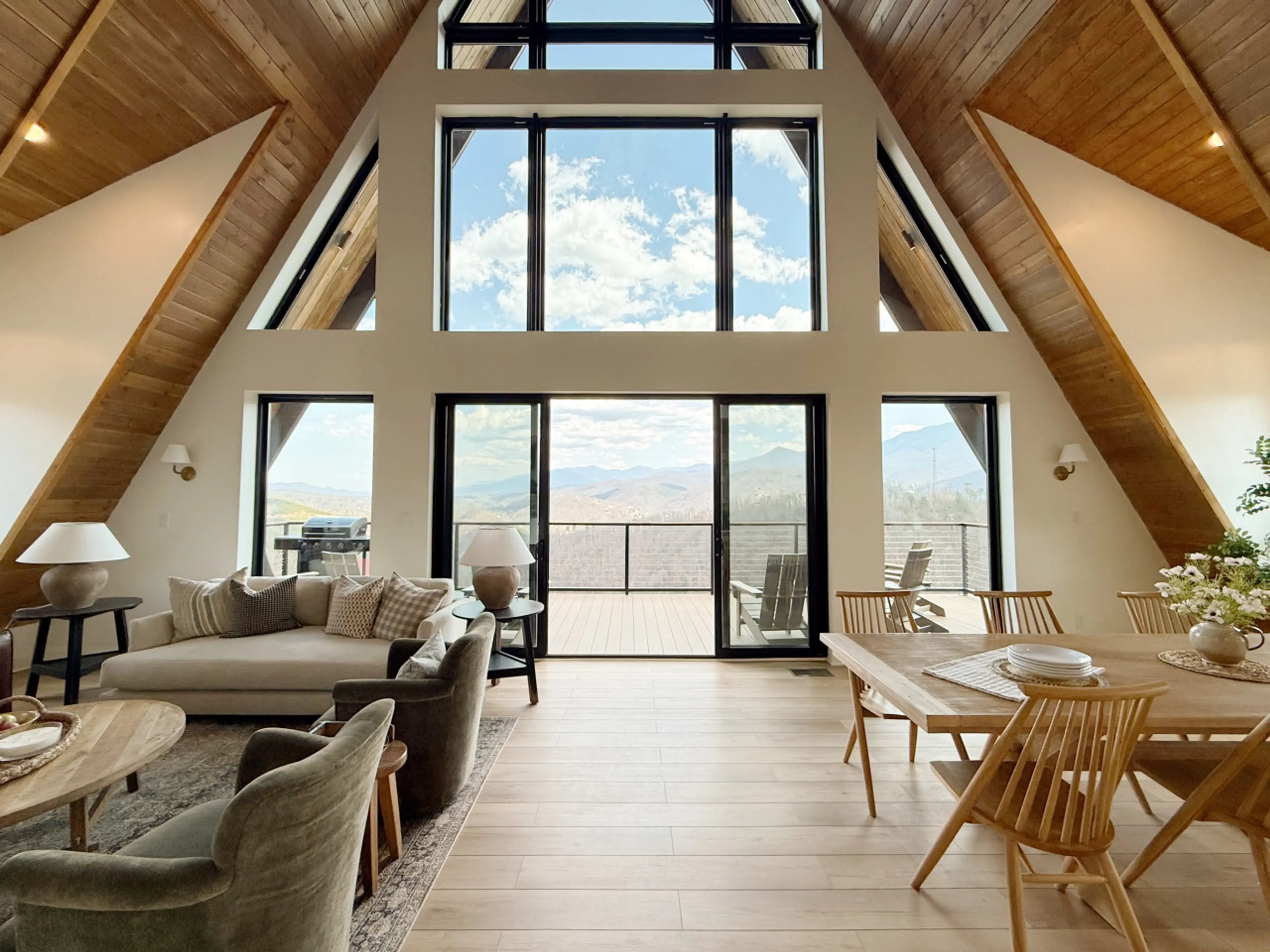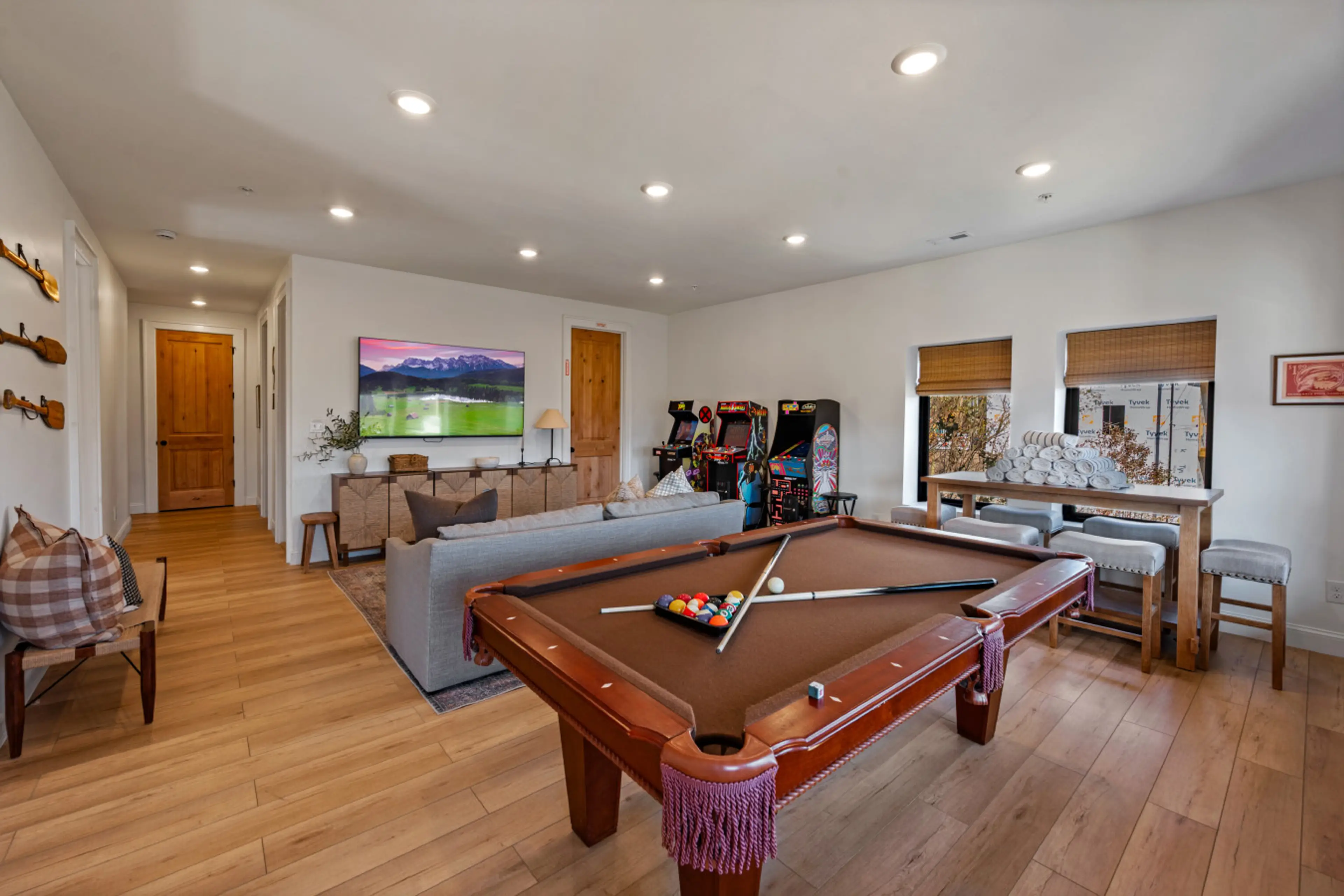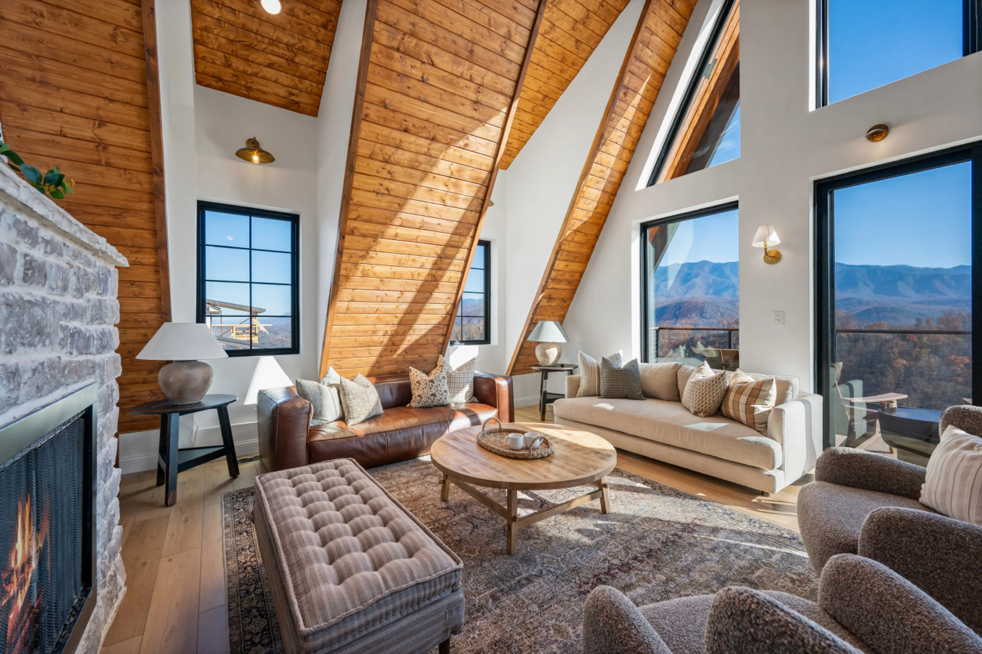 Embrace the beauty of the mountains in this 3-level, 5-bedroom retreat that can accommodate 16 guests! Cozy up by the living room with a fireplace, cook in the fully stocked kitchen, and enjoy Roku TVs in every room. Step outside to serene nature views, grill on the BBQ, or play arcade and pool game...