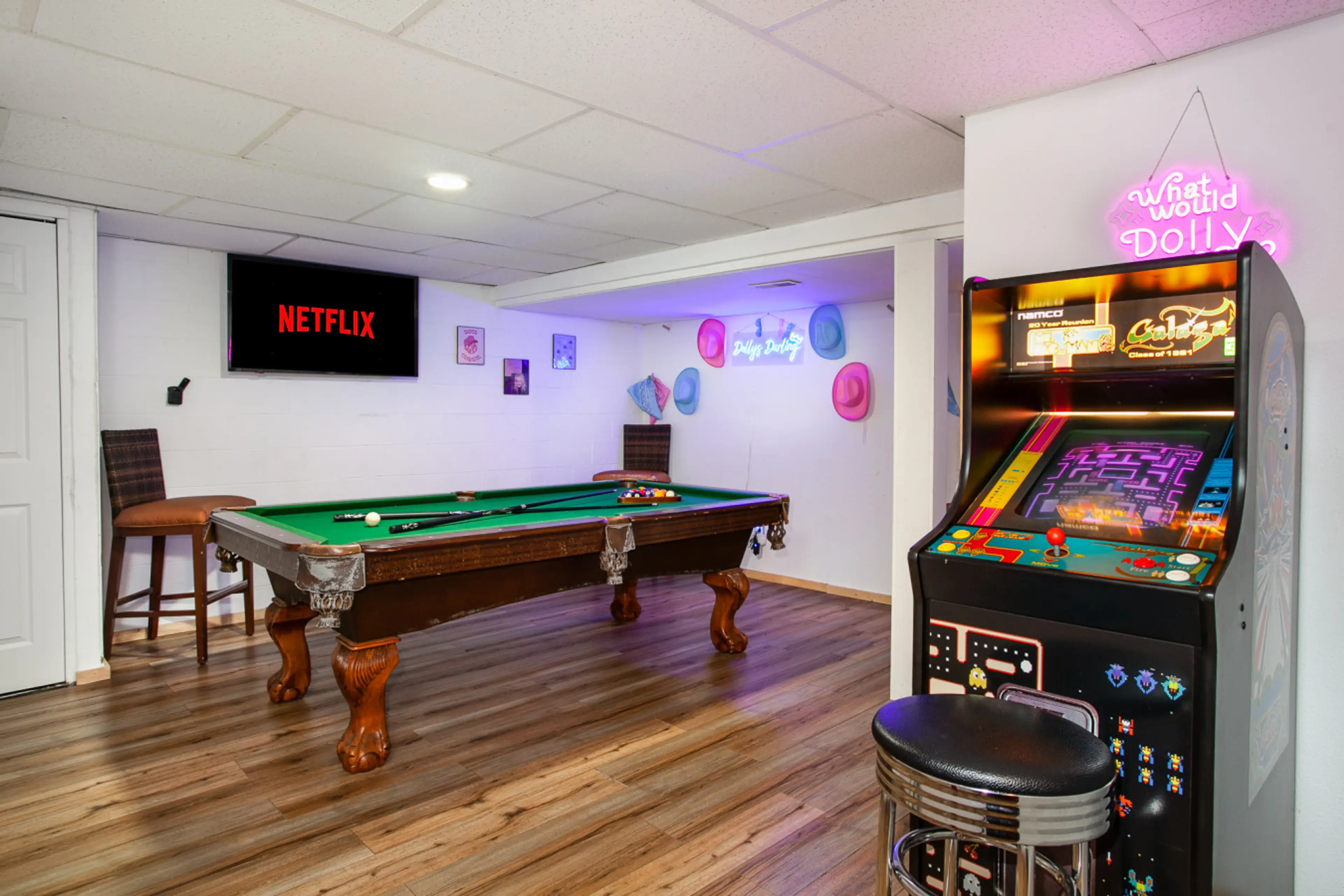 Welcome to Dolly’s Darling in the heart of Sevierville! Enjoy stunning mountain views, a hot tub, and a cozy wood-burning fireplace. Entertainment includes Smart TVs, ping pong, pool table, Pac-Man/Galaga & darts! Grill up a feast on the BBQ or gather around the fire pit under the stars. Relax in th...