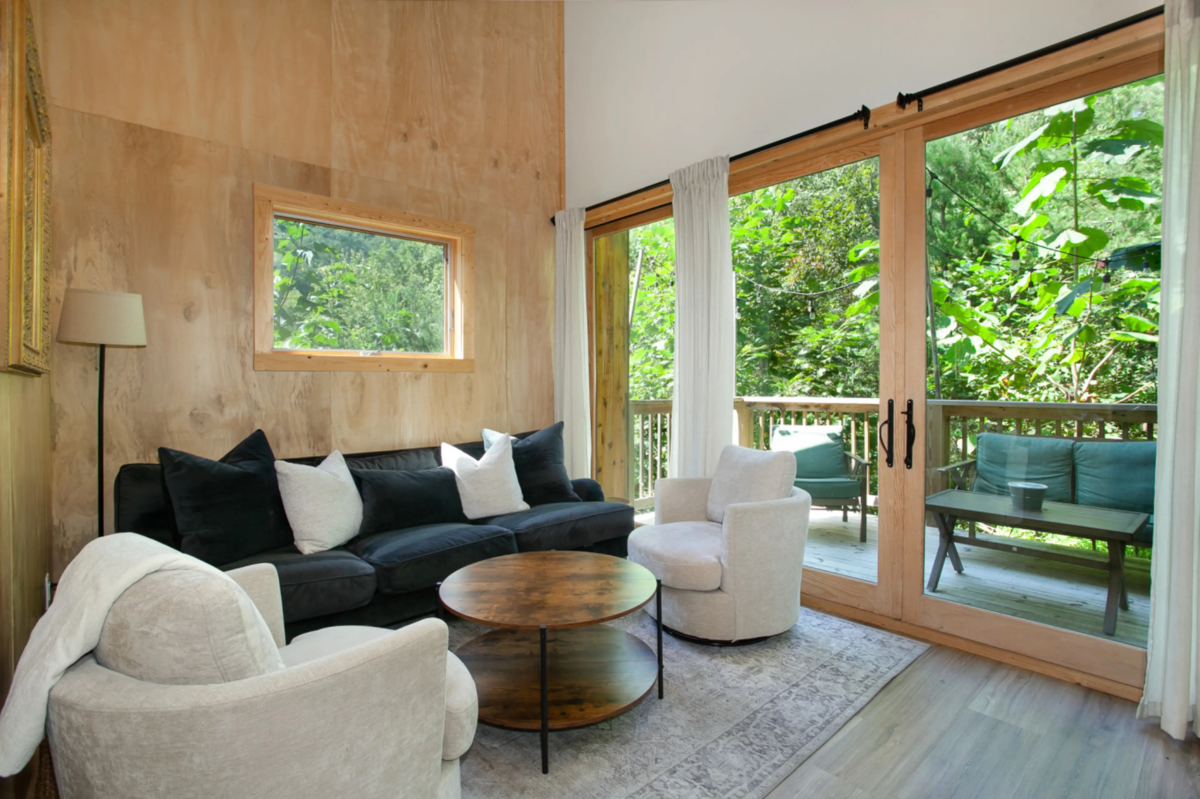 NEW LISTING! Welcome to Scandinavian Getaway, a charming 2-bedroom, 2-bath cabin with rustic wood interiors and a warm, homey vibe. Enjoy movie nights with Roku TVs, play board games, or cook in the fully stocked kitchen. Outside, sip coffee as you breathe in fresh air and unwind in the serene seati...