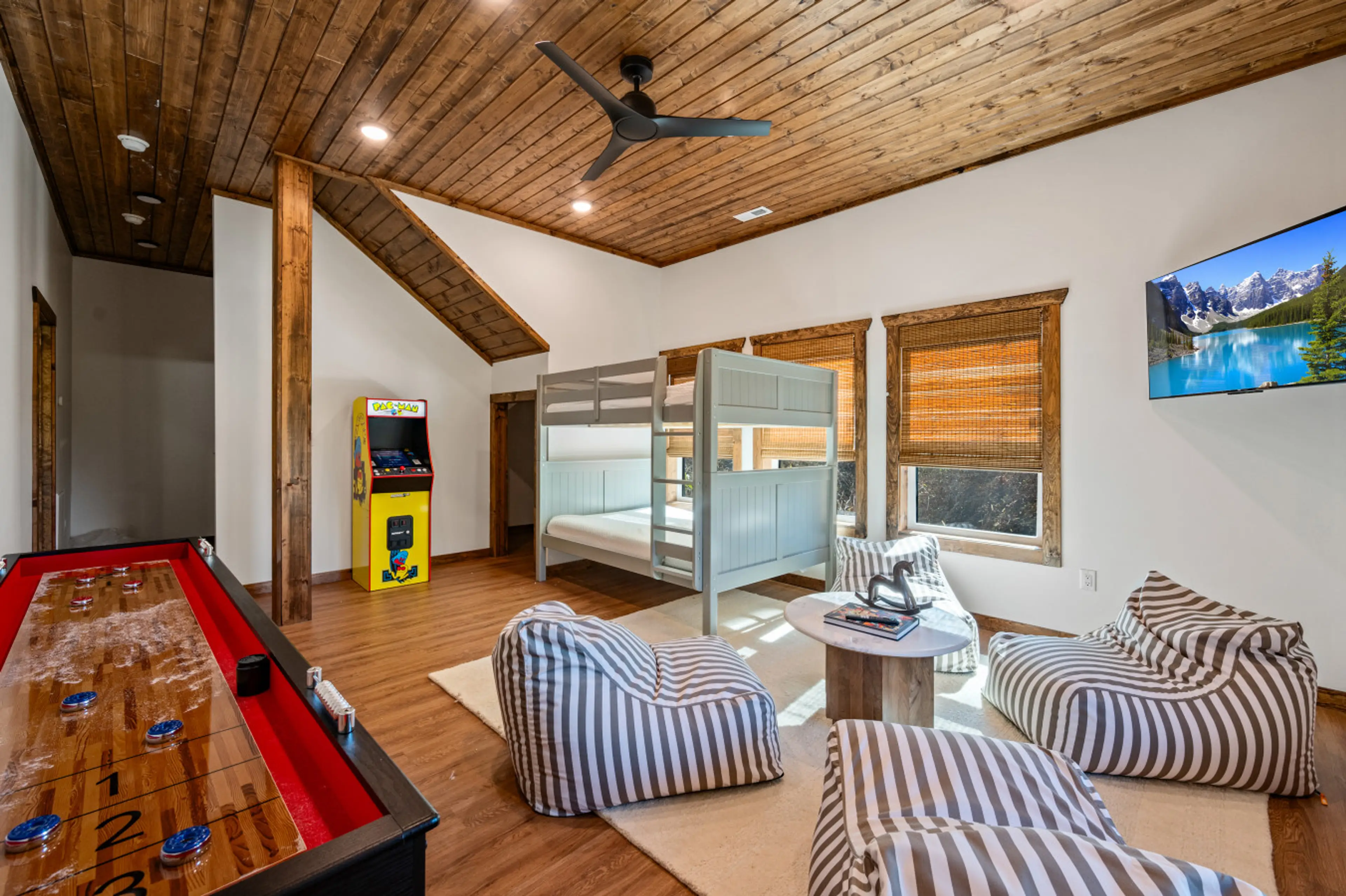Welcome to your ultimate mountain escape! This stunning three-story home offers 3 comfortable bedrooms, a spacious living room with a cozy fireplace, and breathtaking mountain views from every level. Designed with families in mind, you’ll find endless entertainment options, including a Pac-Man arcad...