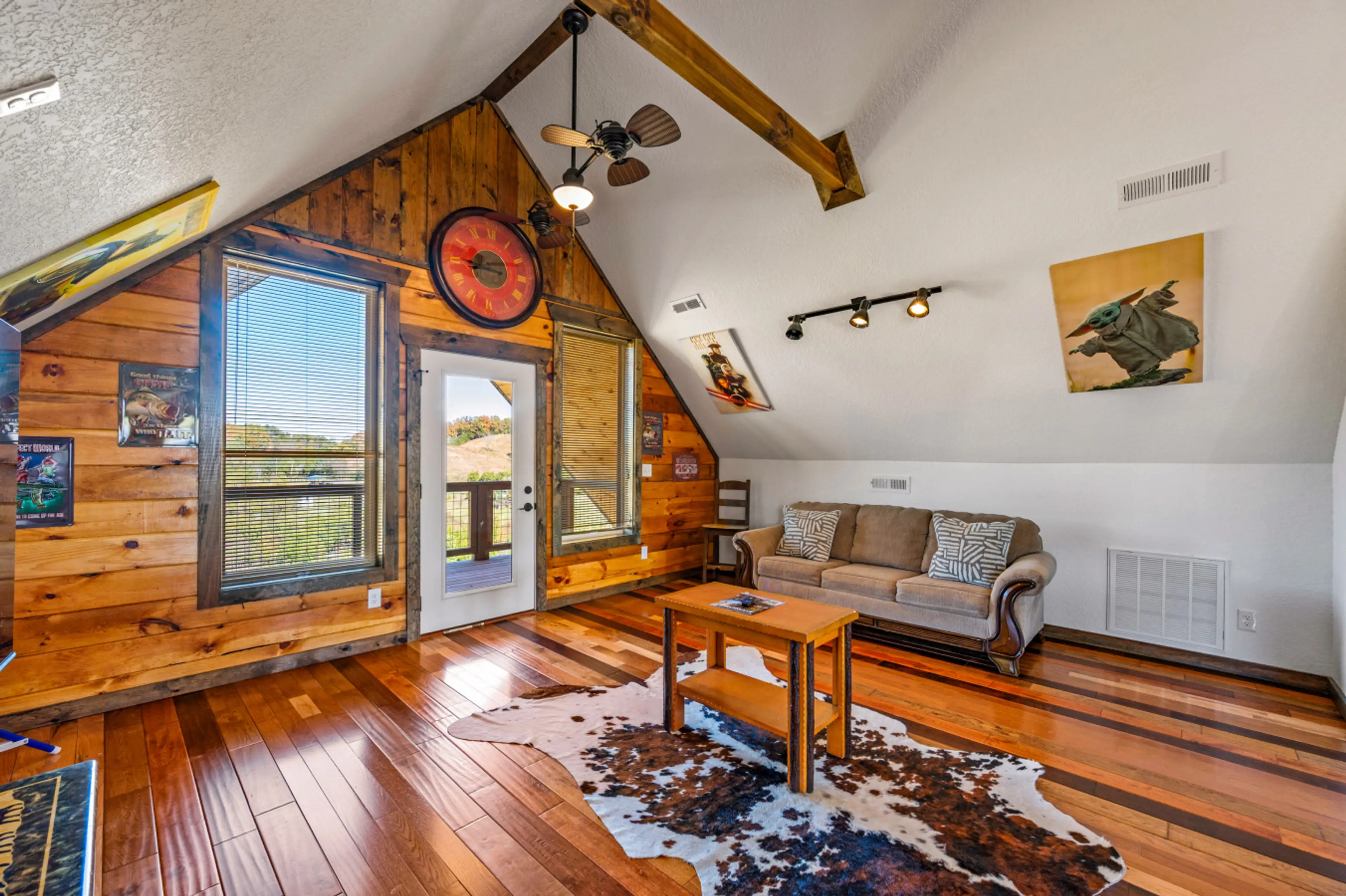 Welcome to Fireside Lodge! This 3-bedroom getaway offers a spacious living room with a fireplace, Roku TVs in every room, and endless entertainment with a pool table, arcade machine, bar area, and hot tub. Step onto the balcony for lake views or head outside to enjoy a BBQ, 4-hole putt-putt, bean ba...