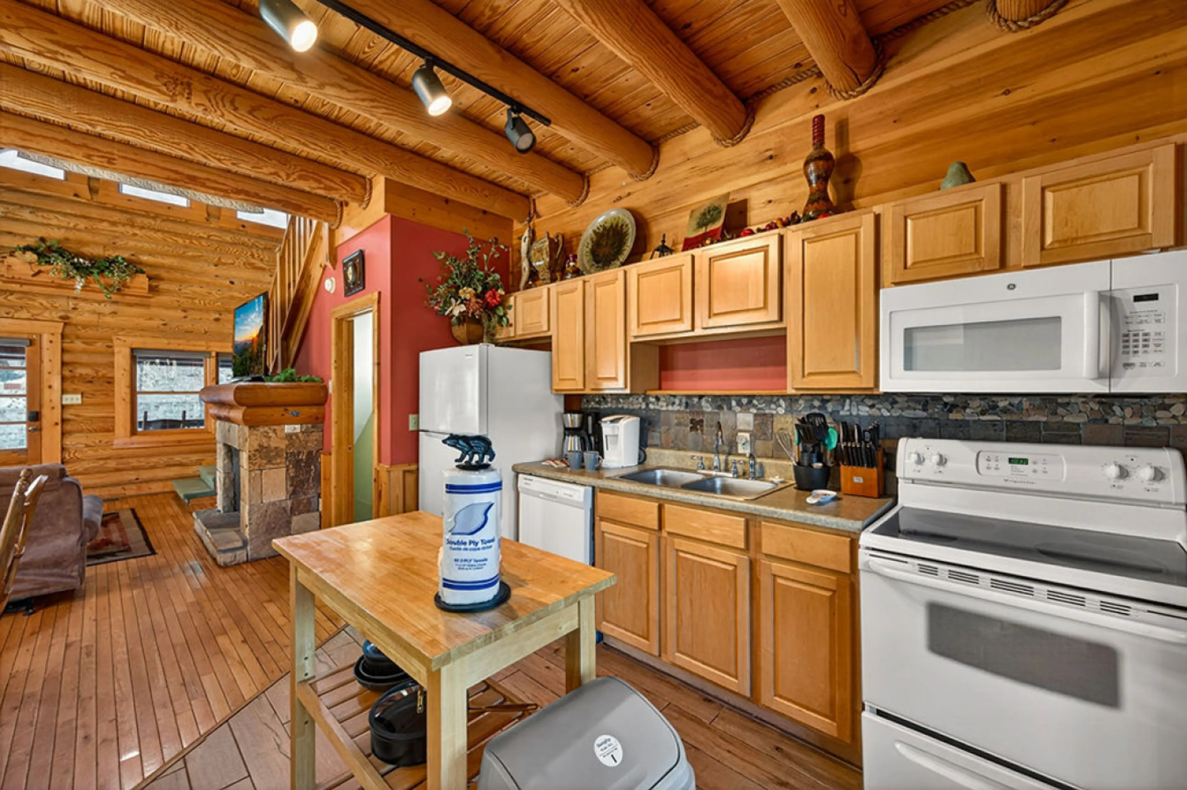 Welcome to a family-friendly, centrally located cabin designed for comfort & convenience. The main level features a cozy living room with a Roku TV, a fireplace, & a fully equipped kitchen. Enjoy plenty of outdoor seating with 2 rocking chairs, a table with chairs, and a private hot tub. The cabin o...