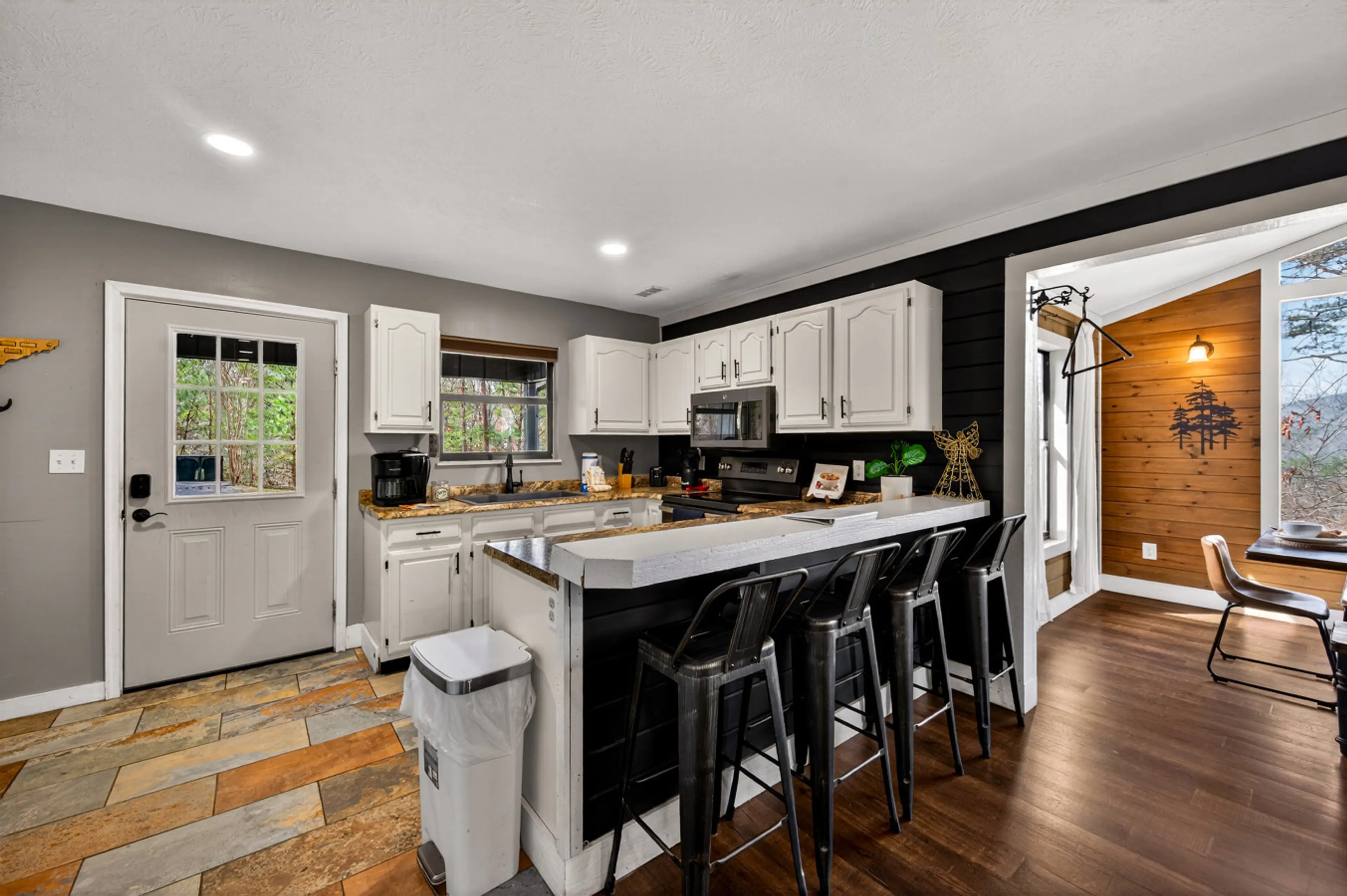 Welcome to Dolly's Outdoor Oasis! Relax in a cozy retreat featuring a hot tub, sauna, wood-burning fireplace, and 50” Roku TV. The spacious kitchen is fully equipped for easy meals, with indoor dining for 4 and outdoor dining for 6. Three main-level bedrooms offer two king beds and one queen, each w...