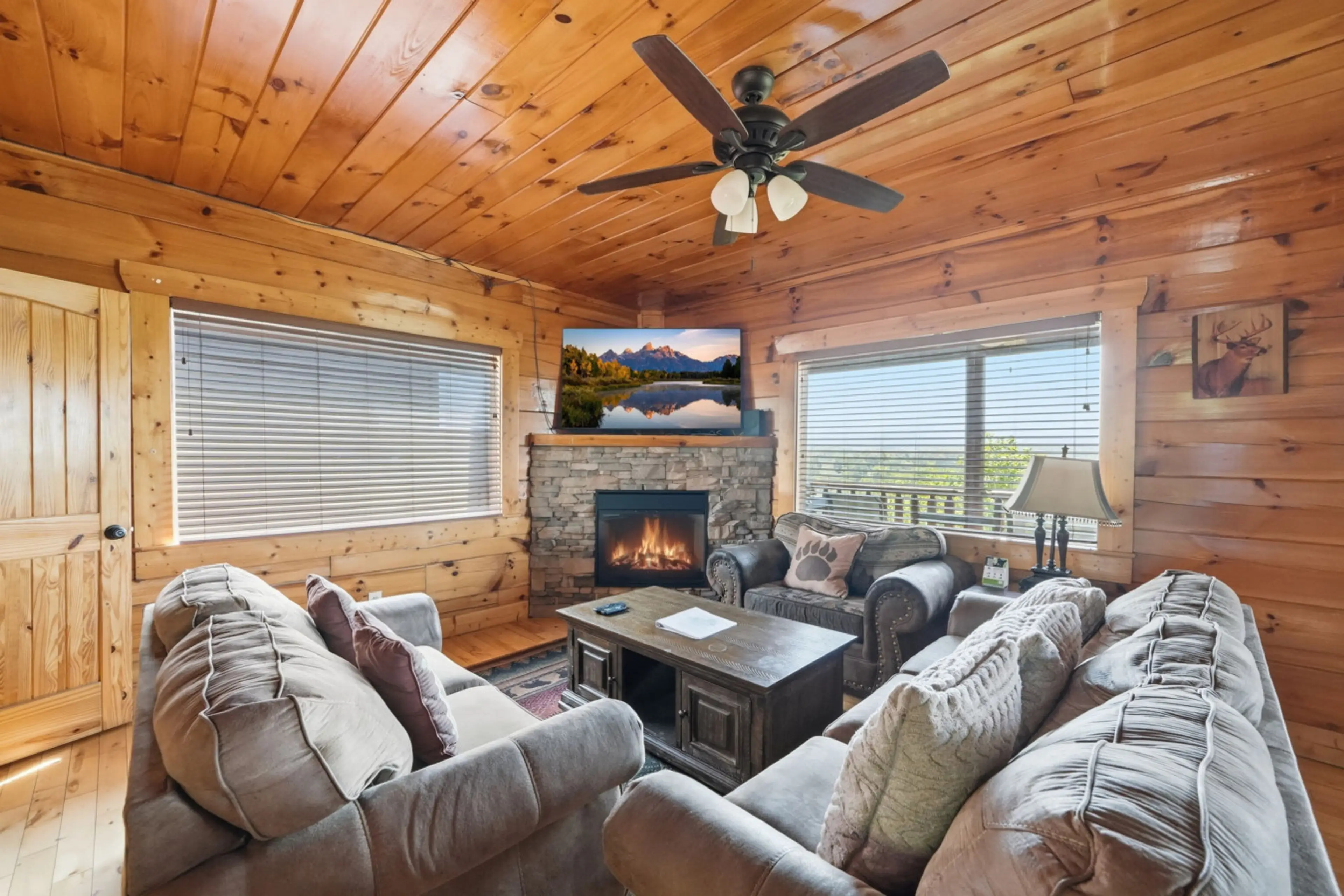 Escape to this nature-filled, family-friendly cabin with stunning mountain views and peaceful wooded charm. This spacious retreat features 4 bedrooms with king beds and private ensuite baths, perfect for comfort and privacy. Enjoy quality time in the game room, unwind by two cozy fireplaces, or soak...