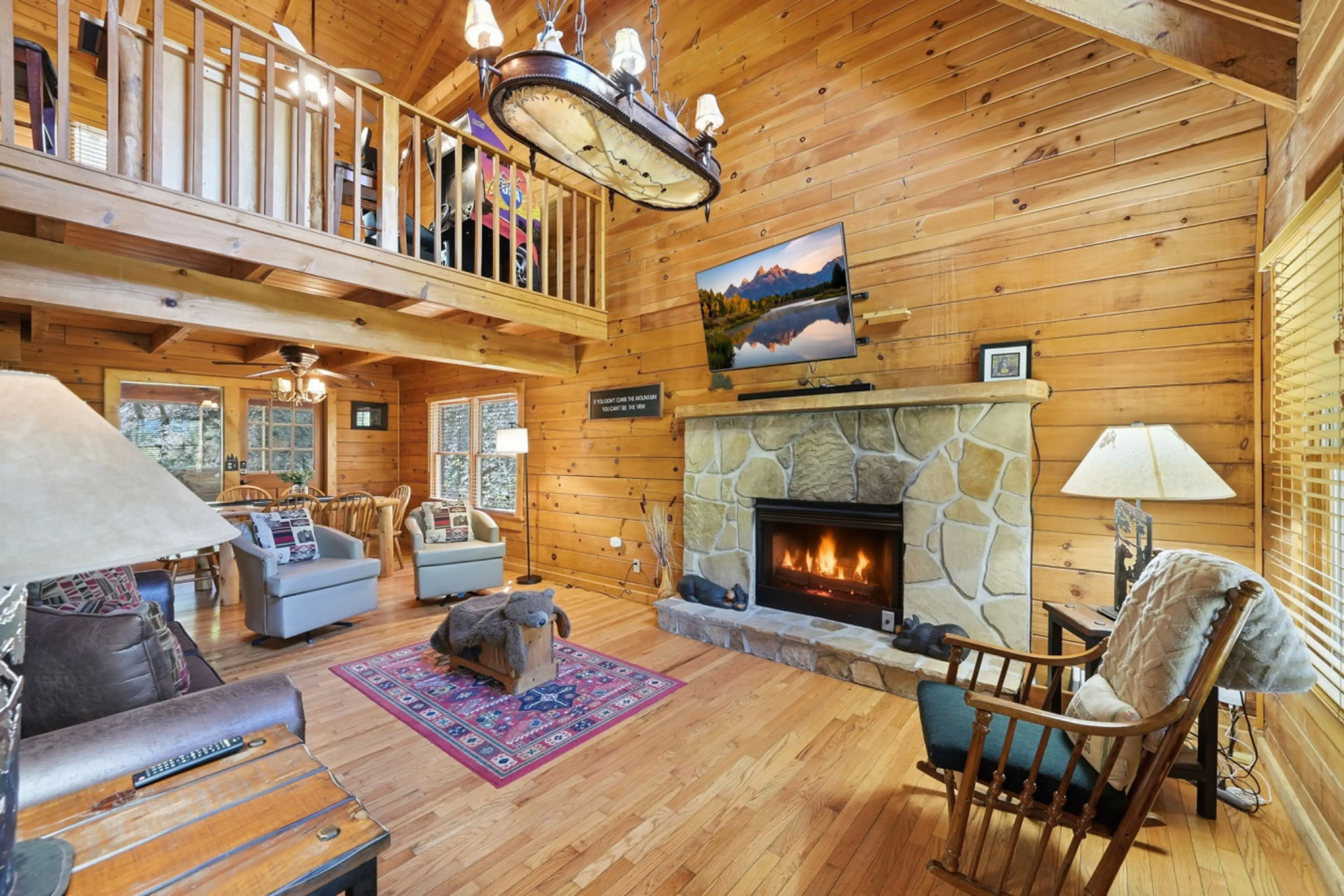 Welcome to Be Still Cabin, a cozy retreat made for relaxing escapes. Enjoy a game room full of fun, unwind in the hot tub for five, or gather by the indoor fireplace and 50” Smart TV. The fully equipped kitchen and dining for six make meals easy. Sleep comfortably with a king suite, queen room, and ...