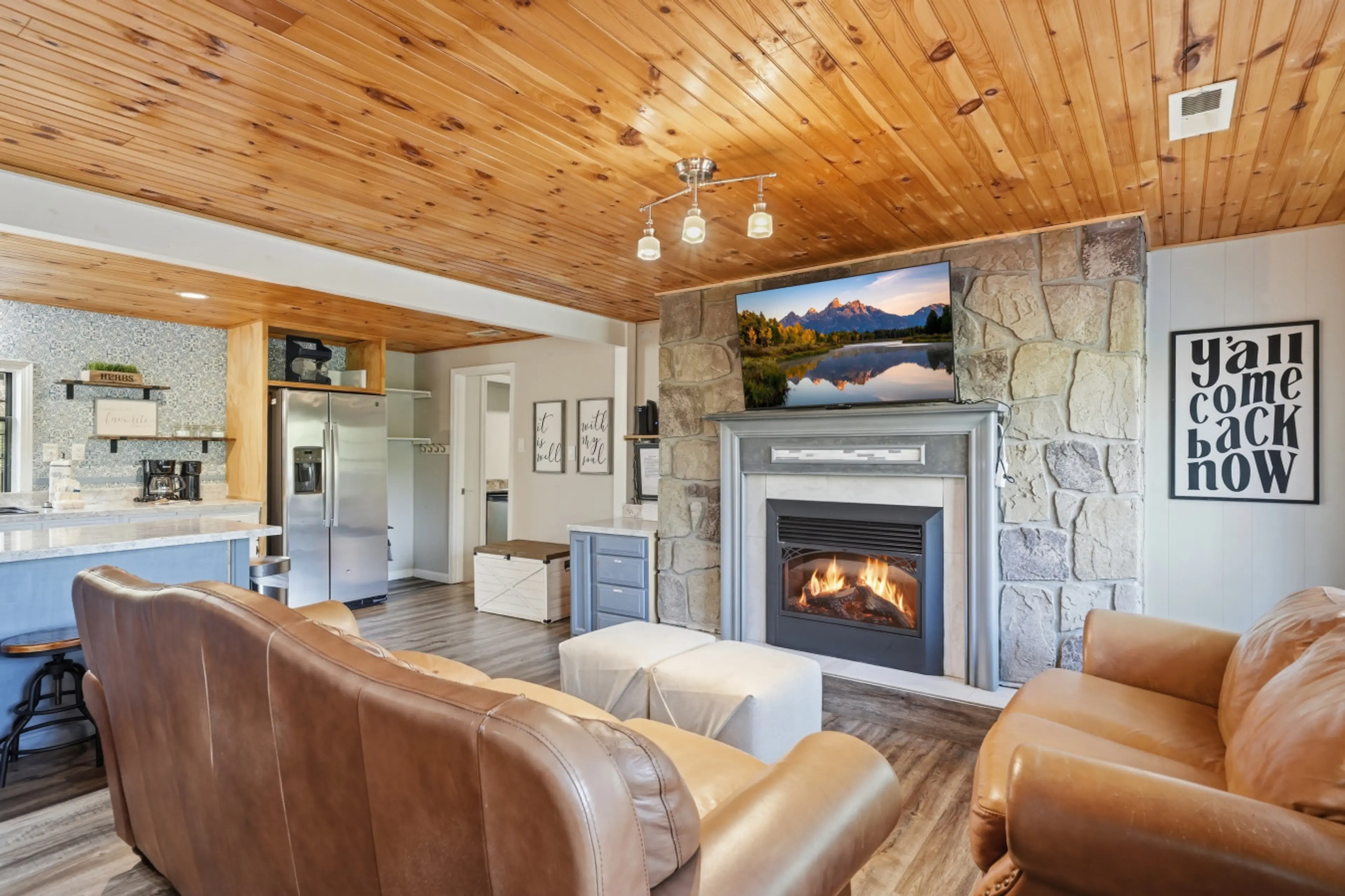 Relax in this cozy single-level home perfect for family getaways. Featuring 3 comfortable bedrooms and 2 private bathrooms, a fully equipped kitchen, and a warm living room with a fireplace and Roku TV, it offers everything you need. Step outside to enjoy the private hot tub, fire pit, outdoor dinin...