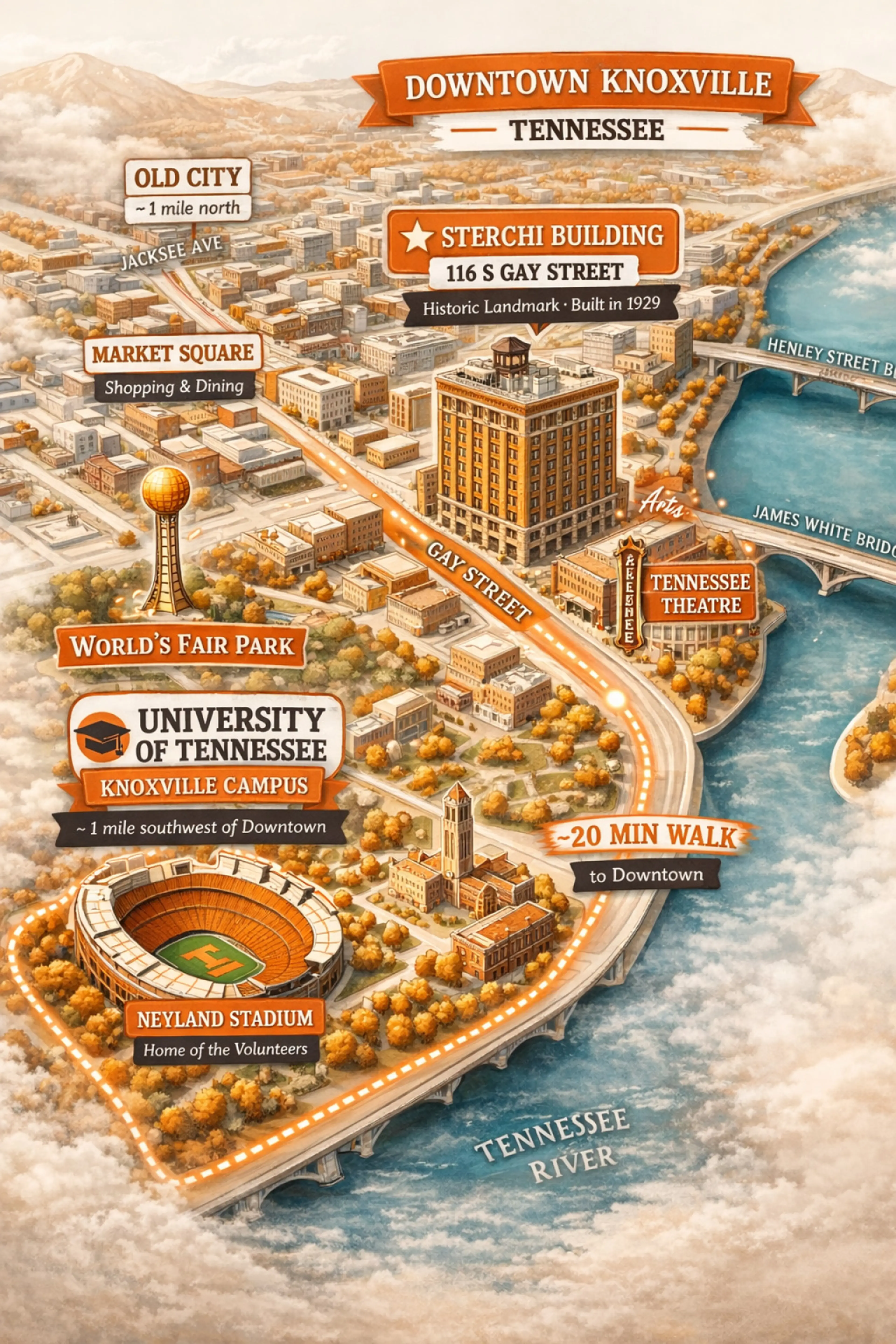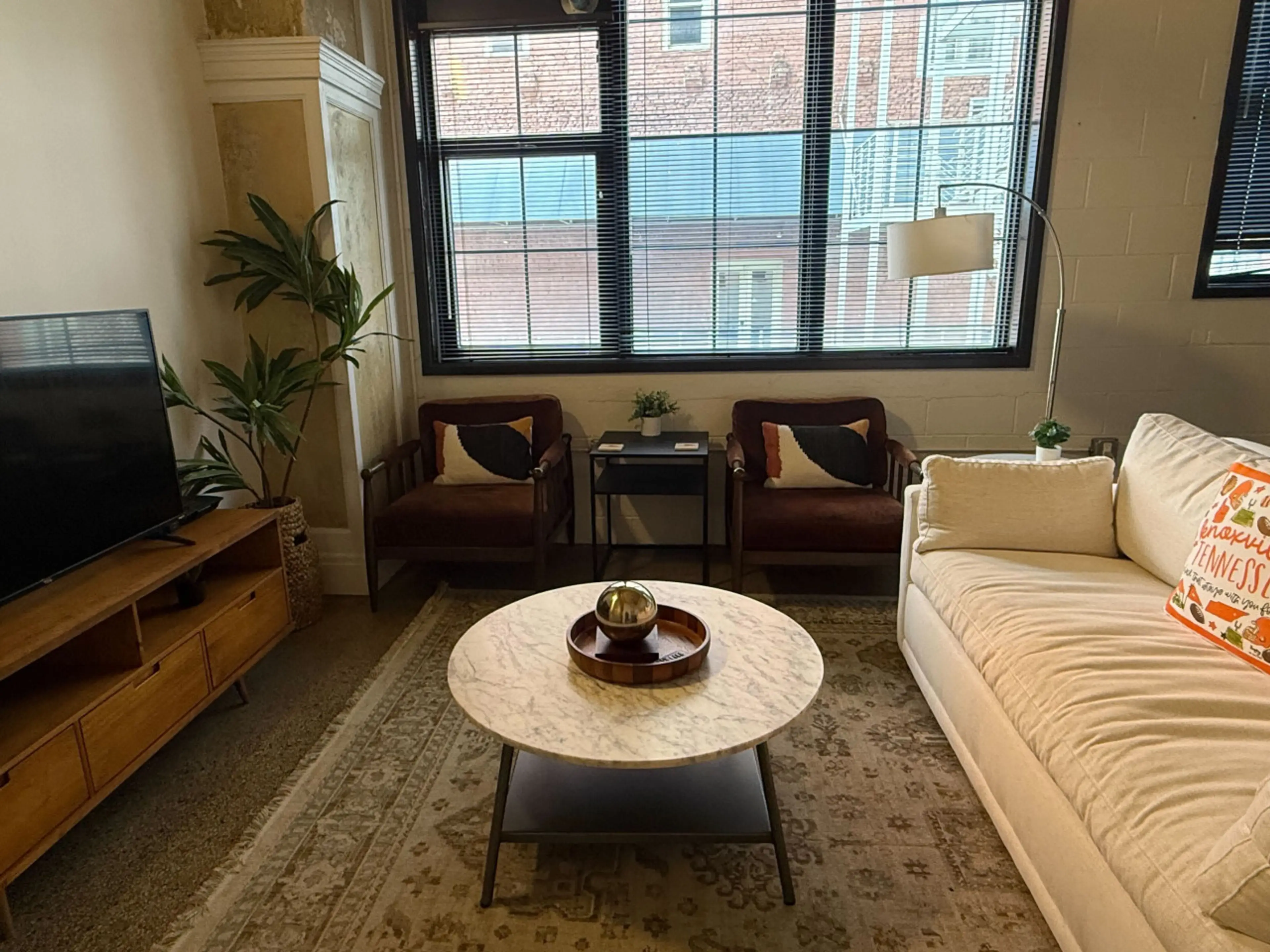 Sunny loft in the heart of downtown Knoxville! When you stay here you are surrounded by some of Knoxville’s best eateries, shops, theaters, and college football…all within walking distance! Just a 2.5 minute walk to market square and walking distance to UT! • 49-inch smart tv in the living room wit...